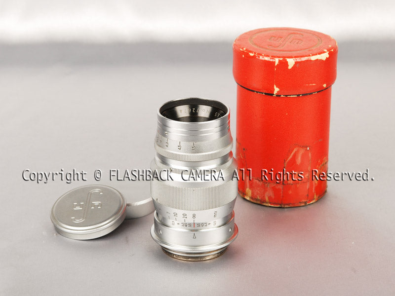 大戦直後のイエナ製と云われる謎のゾナー。50本だけが製造されたと言われる(出典:Non-Leitz LEICA Therad-Mount Lens P133 / Marc James Small著 、邦訳は朝日ソノラマより)。重い真鍮鏡胴。Carl Zeiss Jenaの番号表(黄本)には出て来ず贋物疑惑もあるが、こんな大玉、そう簡単には作れなさそう。ご存じの方、情報をお願いします。後玉周辺部に少々バルサム剥離有。他、ガラス綺麗です。距離計連動もOK。ピントも良し。珍品。(カメラは商品に含まれません)