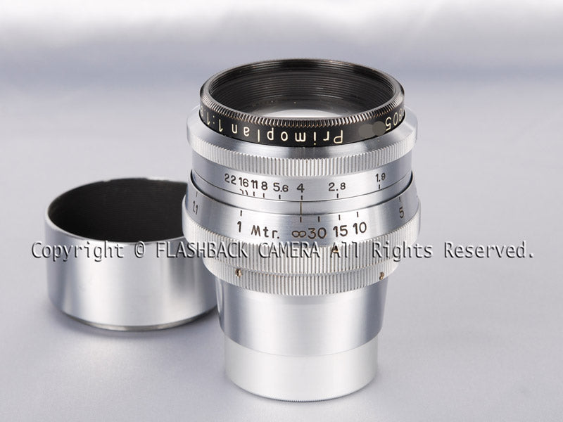Meyer Gorlitz製。1939年製。4群5枚構成、エルノスター型の発展型。m表示。レアな戦前プリモプラン、久々の入荷です。純正ライカマウントですが、距離計には非連動のタイプ(Ohne Kupplung刻印)。戦後のアルミ鏡胴と違って、真鍮のズシリとした鏡胴です。開放ではやや暴れますが、少し絞るとしっとりと優美な描写をします。ボケも柔らかく穏やか。エキザクタの80mm f1.9は比較的良く見かけるが、75mmは珍品。OH済。ガラスとても綺麗です。