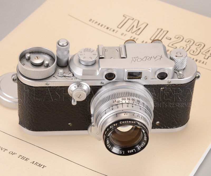 ミリタリー・カードン。CAMERA PH-629/UF。米Premier Instrument社製。1951年と1954年の2回に渡り、米陸軍通信隊(U.S. Army Signal Corps)に供給されたライカ・コピー機。マイナス55度から摂氏65度の環境で実用に耐える、という厳しい要求に応えた一台(試さないでくださいね)。