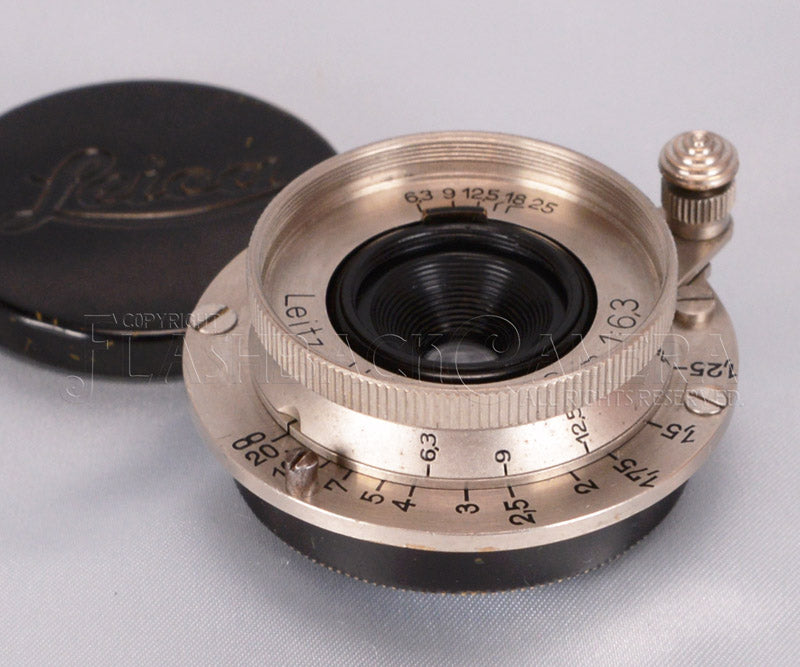 2022年3月にフルOH済です。丁寧な整備のおかげで各部の操作感滑らかに仕上がっています。距離計の連動もバッチリです。鏡胴には小傷や擦れなどの使用感がみられます。またニッケルメッキは経年によりくすんでいます。基部にはなぜか2本のビス(皿ネジ)が追加されておりますが、何のためのものなのかは不明です。往時、他のカメラに固定されていたのでしょうか。ガラスにはヤケが見られますが、拭き傷はみられず良好な状態を保っています。実写テスト結果も良好でした。逆光にもしっかりと粘ってくれる良い写りの個体です。試写館に作例を掲載いたしましたので是非ご覧ください。1935年製造のレンズですが、その実力は侮れません。