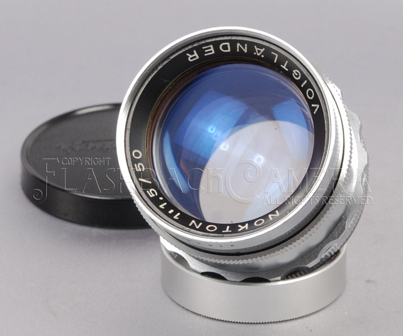 純正ライカLマウント。稀少・銘玉。6群7枚構成。距離表記はメートル。1950年代始めにプロミネント用に製造されたが、少数ライカ・スクリューマウントも作られました。コンタックスマウントもごく僅かにありますね。スタイル、描写共に、数多あるノンライツ・レンズの中でもトップクラスでしょう。ライカ・ノクトンは7種類以上のバリエーションがありますが、本品はブルー・コーティング、黒銘板、三本帯と、一番人気の初期タイプ。2016年8月にOH済。ガラスも拭きキズ等見られずとても綺麗です。最短・絞り解放からピントもバッチリ。
