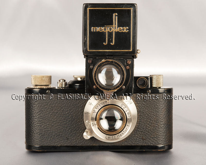 Hugo Meyer製のライカ DII用外付けファインダー。ミラーを倒せばアイレベルでの撮影も可能。今の世ではけったいなアクセサリーですが、大まじめに作られた感タップリのコレクター垂涎のアイテム。装着した姿も良いですねぇ!大変良いコンディションです。(カメラとレンズは商品に含まれません。)