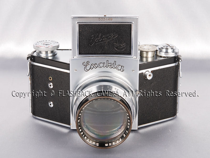 1937年製。Exakta A型をベースに大口径レンズを装着したモデル。6.5X4cm判(127フィルム)。他にも、Makro-PlasmatやProimoplan、Dallmeyer Super-Six、Biotar等々、魅力タップリの標準&交換レンズ群がありました。シンメトリーなボディに大口径レンズの組み合わせ、美しいExaktaのロゴ。見た目は最高なのですが、市場で見かける9割は不動品。レンズだけが抜き取られてしまう可哀想な置物&文鎮カメラの代表格ですが、本品はなんとOH済。バシバシ撮影が可能です!