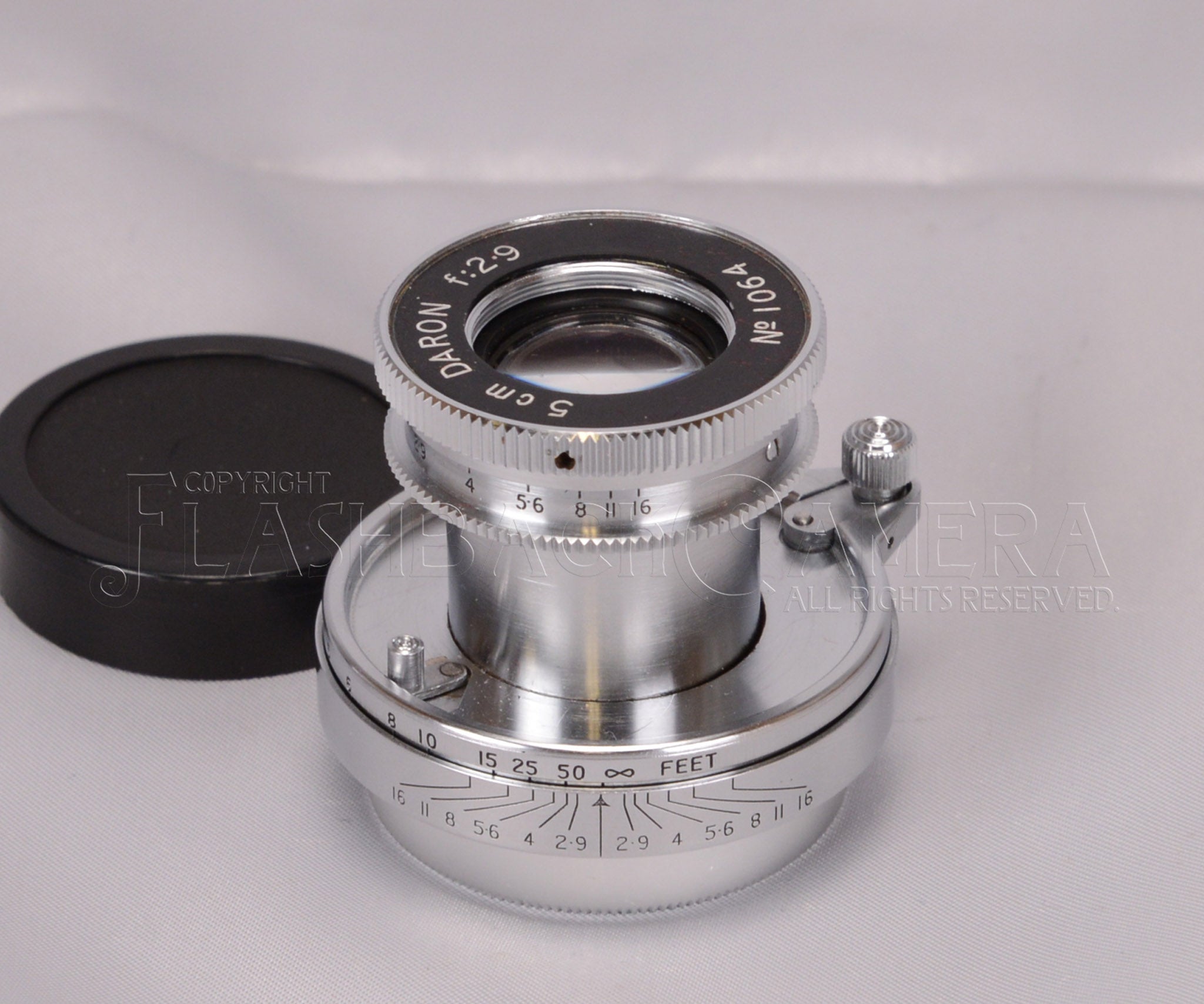 英国製の銘ライカコピー機、Witness用初期の標準レンズ、ダロン 50mm f2.9。量産性とF値の暗さから、すぐにSuper-Six 2inch f1.9へと交替してしまいました。