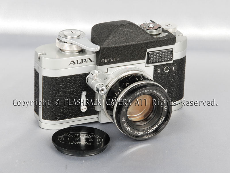 Released in 1960. Eqiupped with Selenium exposure meter.  Most reliable and easy to use model in ALPA. Little corrosion inside the finder. Very clean body, especially the Macro-Switar 50/1.8 is in a super nice condition.