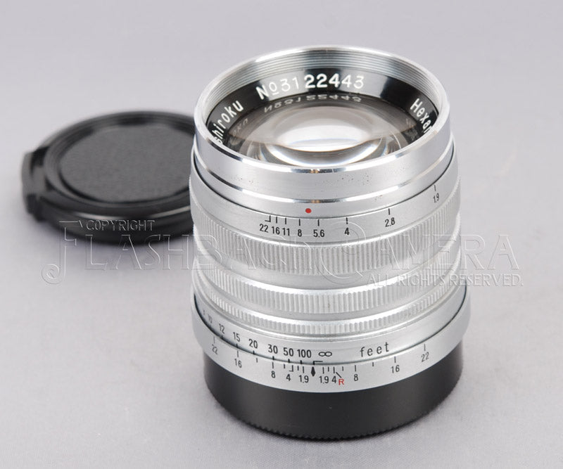 Early type of Leica screw mount Hexanon. Made around 1955. 6 elements in 5 groups. FIlter size is 39.5mm, screw in type. The both barrel and glass are very clean. All the parts are move smoothly. Fully serviced in August 2016. Please check our test shots!