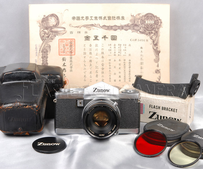 @Very RARE@ With quick return and automatic diaphragm. Made in 1959. FInder and screen are changeable. In good working condition. Coming with rare filter, hard case, flash bracket and a share certificate of Teikoku Kohgaku. *Selling on consignment.