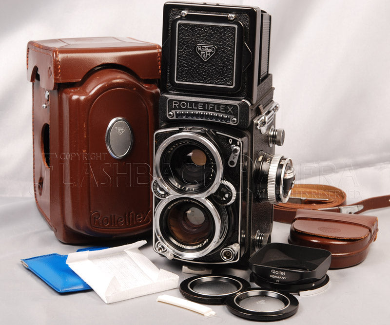 Very slight dust inside of the taking lens, yet no haze or stain and pretty clean. Genuine leather case, RIV hood, cap, strap and glass plate (optional accessory from Rollei) are coming with!