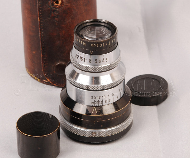 Made by Meyer Gorlitz, in 1932. Modified to Rectaflex mount later year. Comes with genuine hood and well used Meyer leather case. All the parts are cleaned and adjusted including focusing.