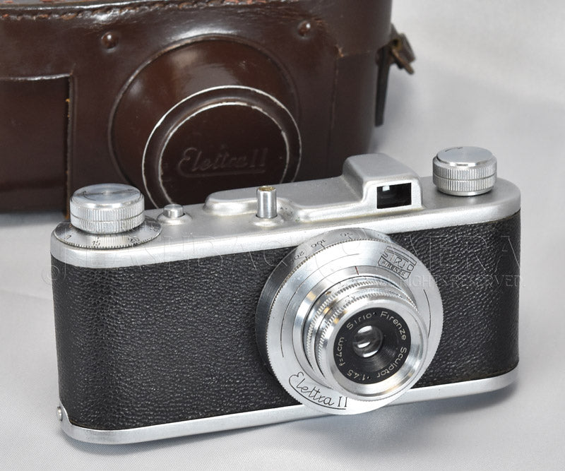 Manufactured by SIRIO in Firenze, Italy, around 1946. Leica type camera. B, 25, 50, 100, 200, shutter speeds. Fixed lens. Very simple 35mm film camera. Aluminium body. Sculptor 40mm f4.5 is rare type. Usually f5.6 is installed. Rare item