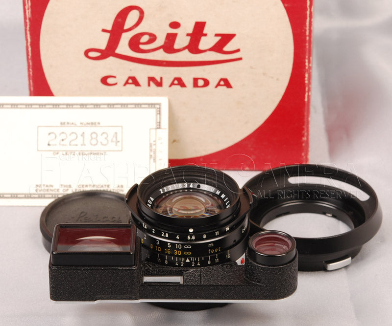 11871. Early of 2nd model, made in 1966. With stopper. The closest distance is 65cm. Goggle frame and stopper part are in Black Paint. Rare set with serial number matched box and Import Certificate by Leitz N.Y. Good for collection!
