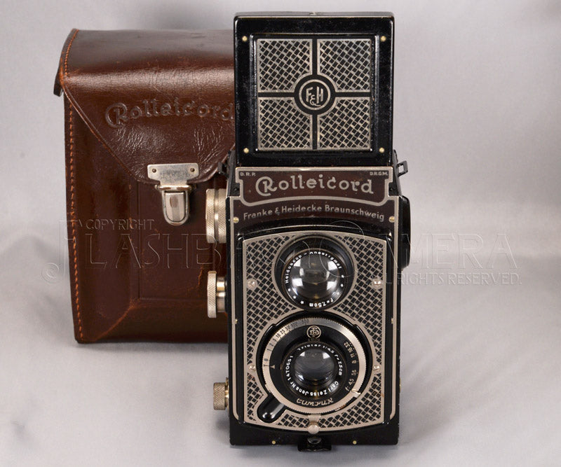 Art Deco. Released in 1933. Beautiful nickel plating with diamond pattern. Large manufacture numbers, yet not many of them are exist in such a good condition. With Triotar 75mm f4.5. Filter size is 28.5mm. 860g.