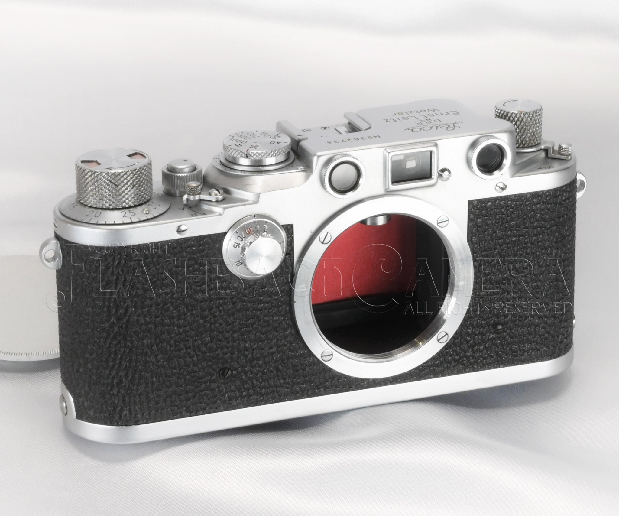 A fully usable IIIc converted to IIIf with original red curtains and the N-L marking. This is a truly rare and special example.
