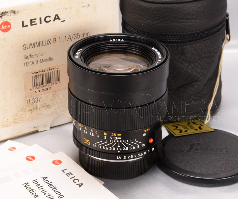 Summilux-R 35mm f1.4 ROM. Manufactured in 1999. E67. Built-in hood. Closest distance is 0.5m