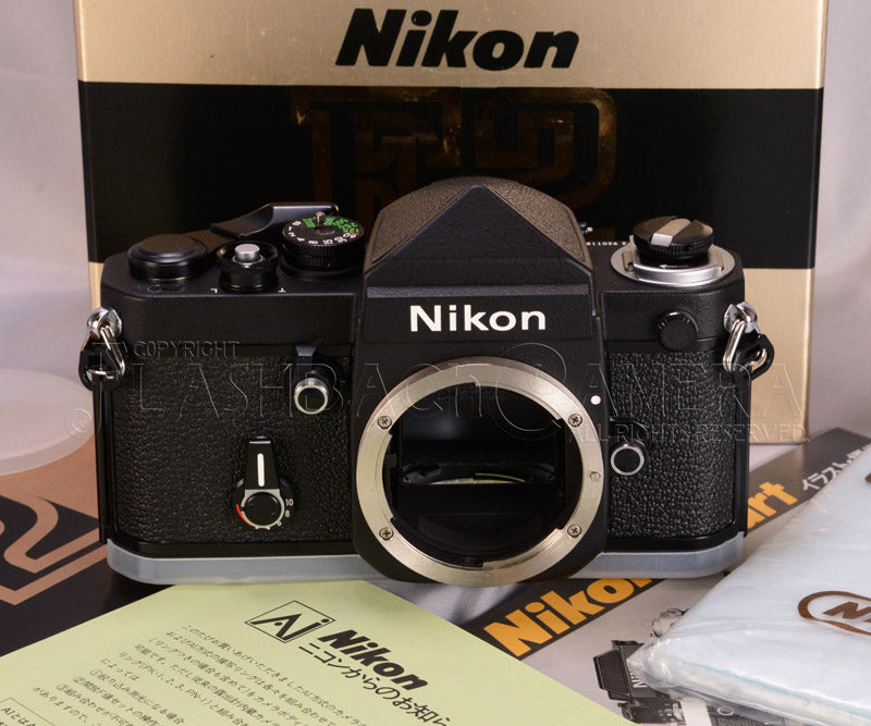 Nikon F2 Titan No Name. Like new condition without any signs of use. Just open box. This camera delivered to the advertising company in 1979. Comes with caps, manual, nikon chart, nikkor club invitation, warranty card, cleaner cloth, box.