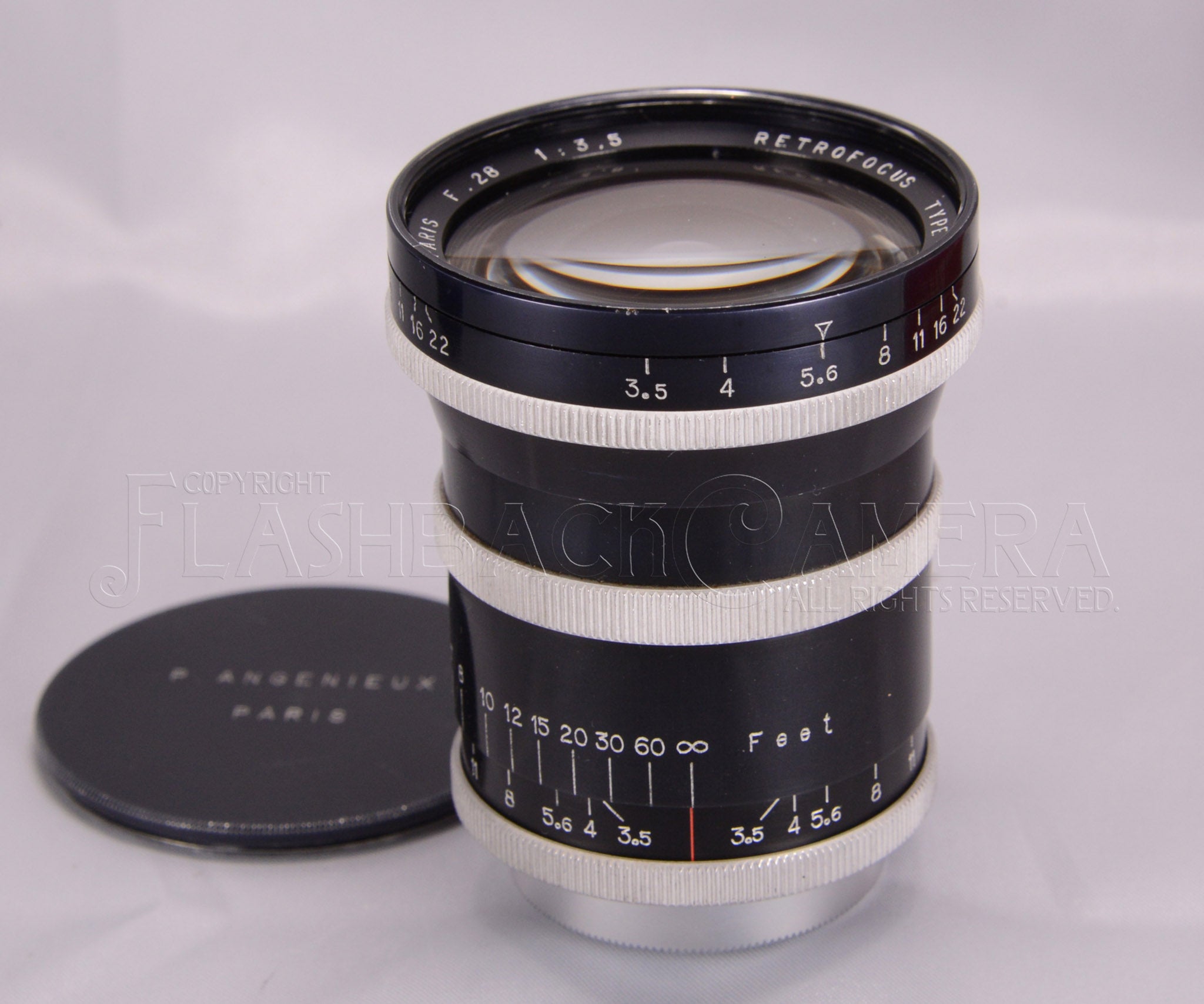 Type R11. Early type. Leica Screw Mount / LTM. Coupling with rangefinder. Feet scale. Retrofocus type. 6 elements in 6 groups. Manufactured in 1954. Blue and purple coating glass.