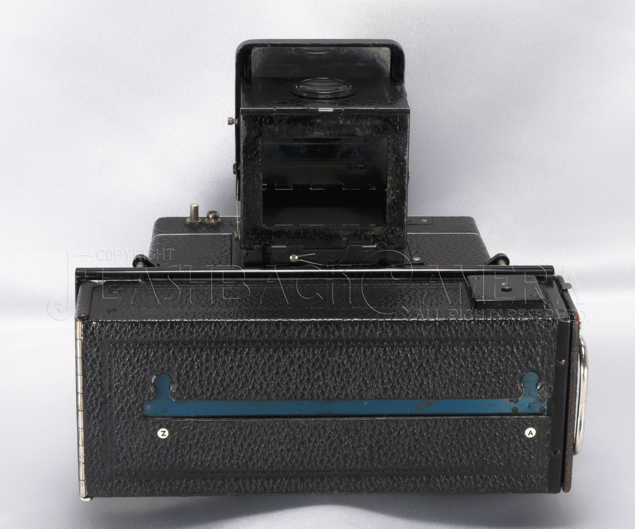 A close examination reveals notable similarities to the original Rolleiflex, such as the f4.5 Tessar and familiar focusing hood. While shooting is difficult today without a roll film holder, the build quality and mechanical charm make this camera a joy to observe and operate—an item rich in character and appeal.