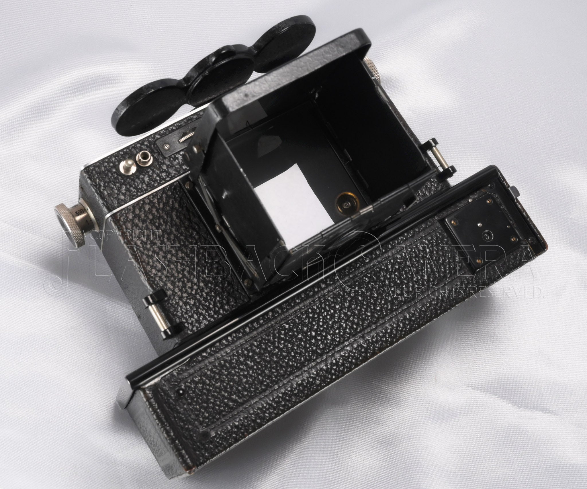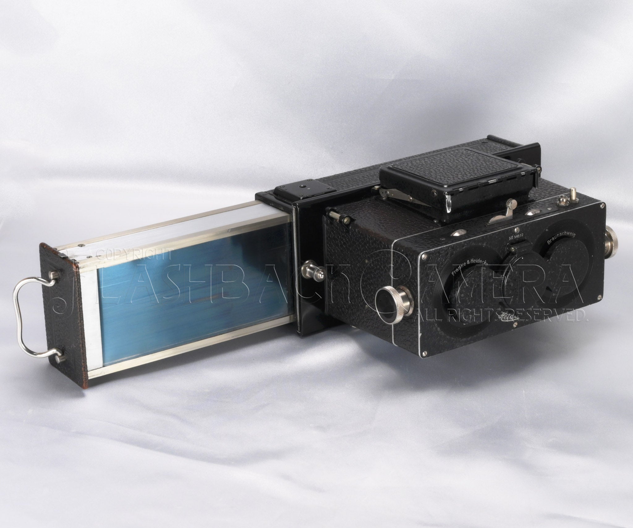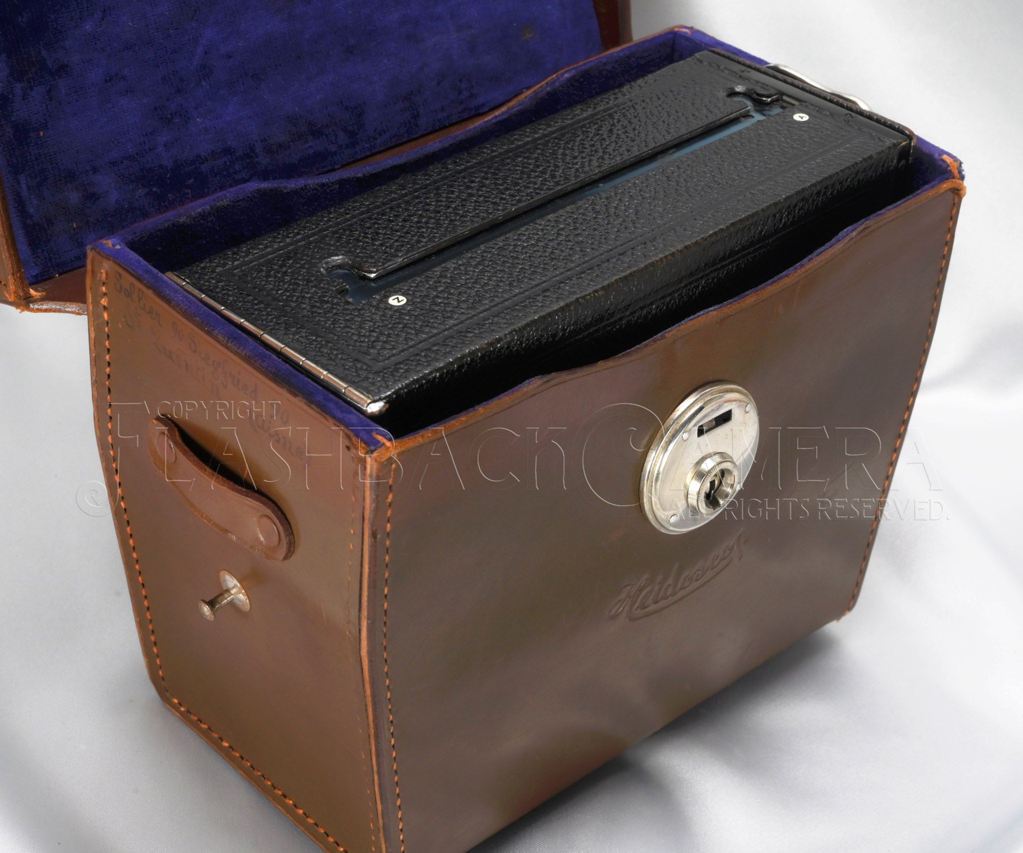 The Heidoscop used 6x13cm dry plates. Its cartridge system could hold twelve plates and allowed quick and satisfying operation. At the time, film backs were also available to enable the use of roll film. The shutter was a proprietary air-pump type mechanism.