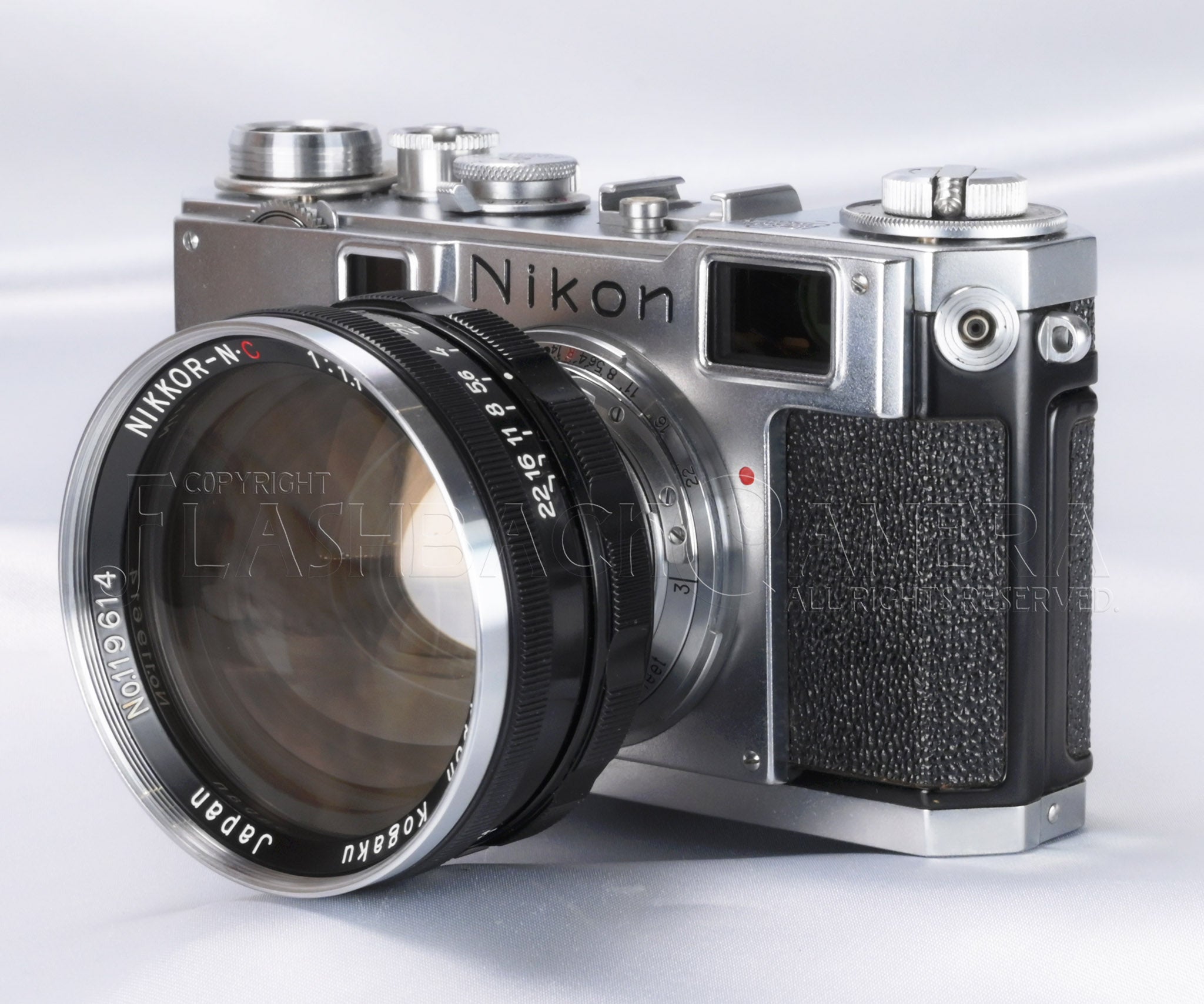 This lens is the internal bayonet version, known overseas as the Internal Mount. Production later shifted to the external bayonet type in 1959. It takes 62mm filters. Among Nikkor lenses for still photography, including those for the F-mount, it is one of the largest-aperture lenses ever made.