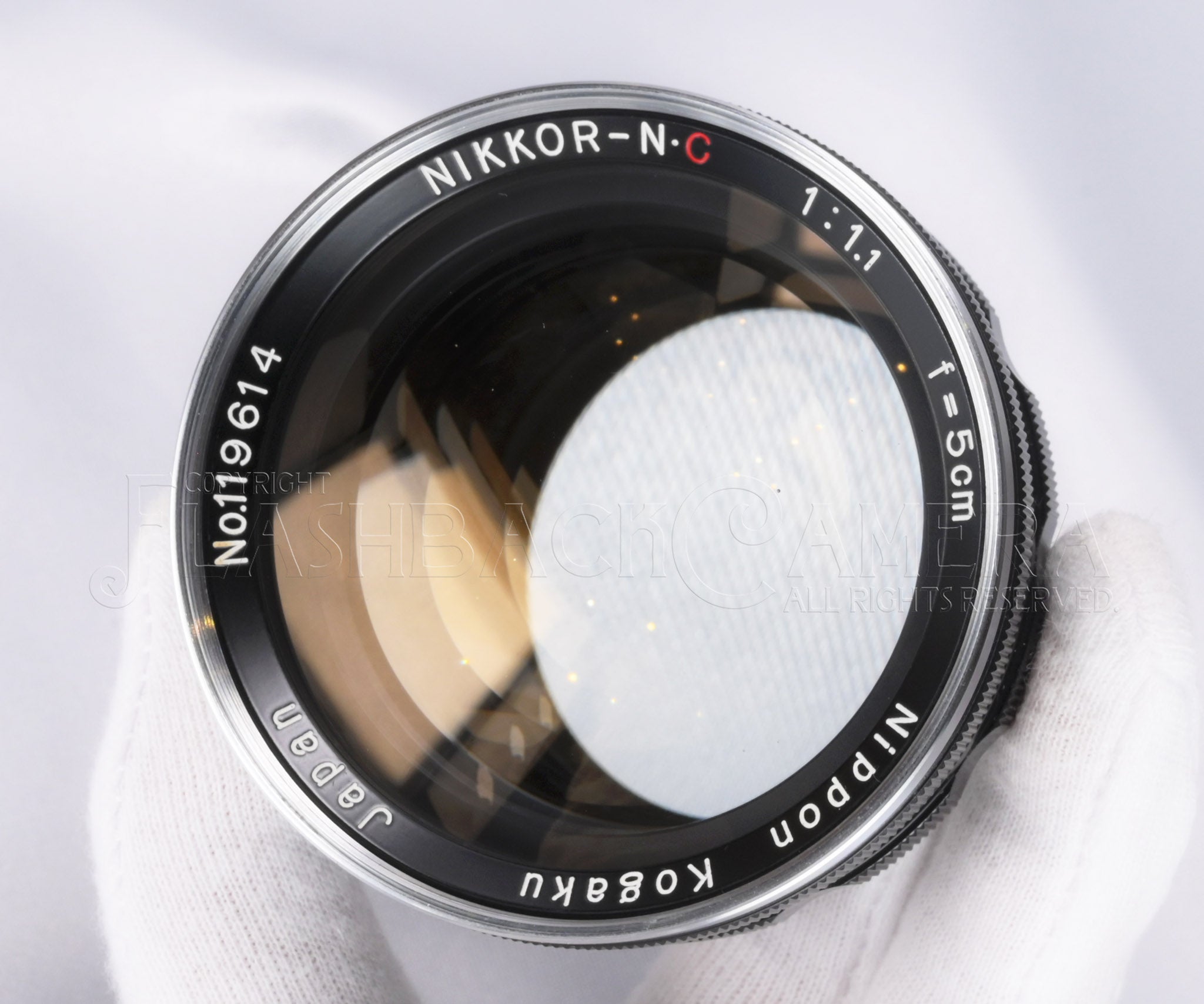 The Nikkor 50mm f1.1 was introduced in 1956, starting from serial number 119601, and this example is serial number 14, making it one of the very first lenses produced.
