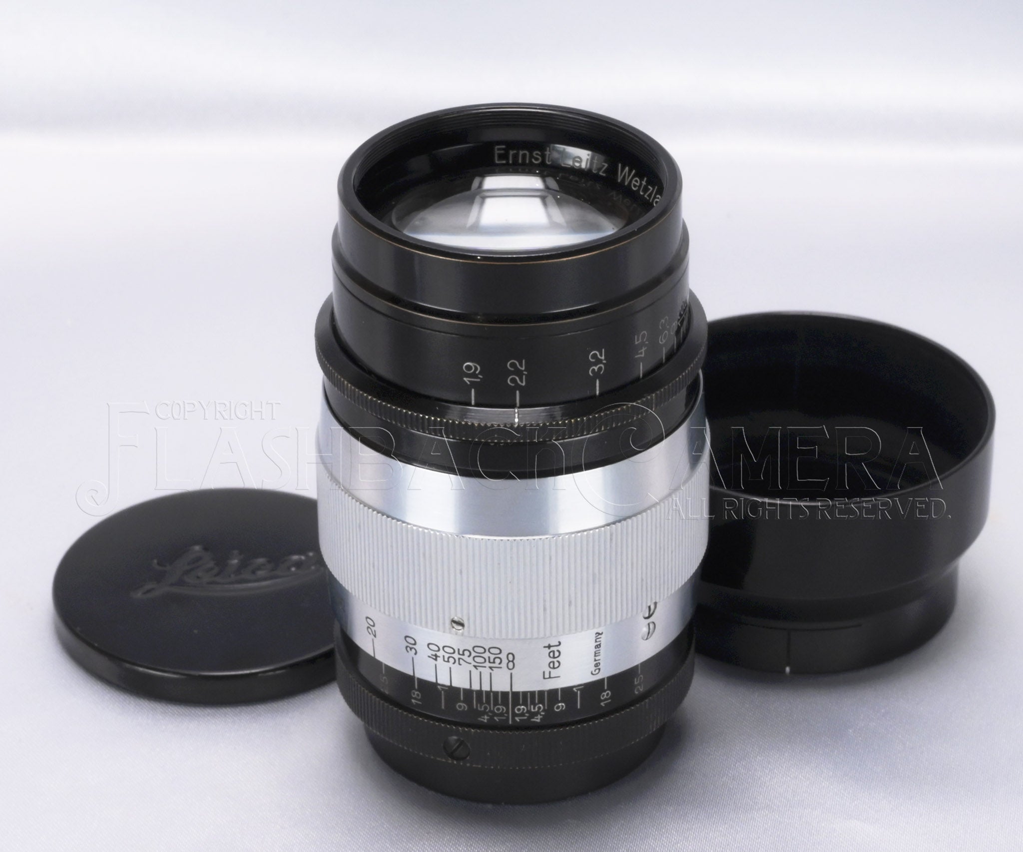 Leitz code name HEGRA. The Hektor 73mm f1.9 is a classic prewar medium-telephoto lens from Leitz and the first fast medium-telephoto lens for Leica. This particular example features a black paint and chrome finish with a straight helicoid design.