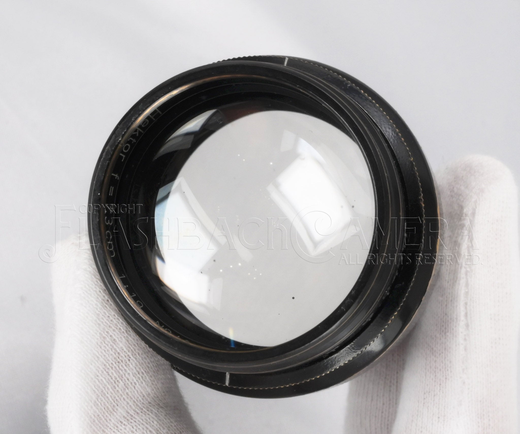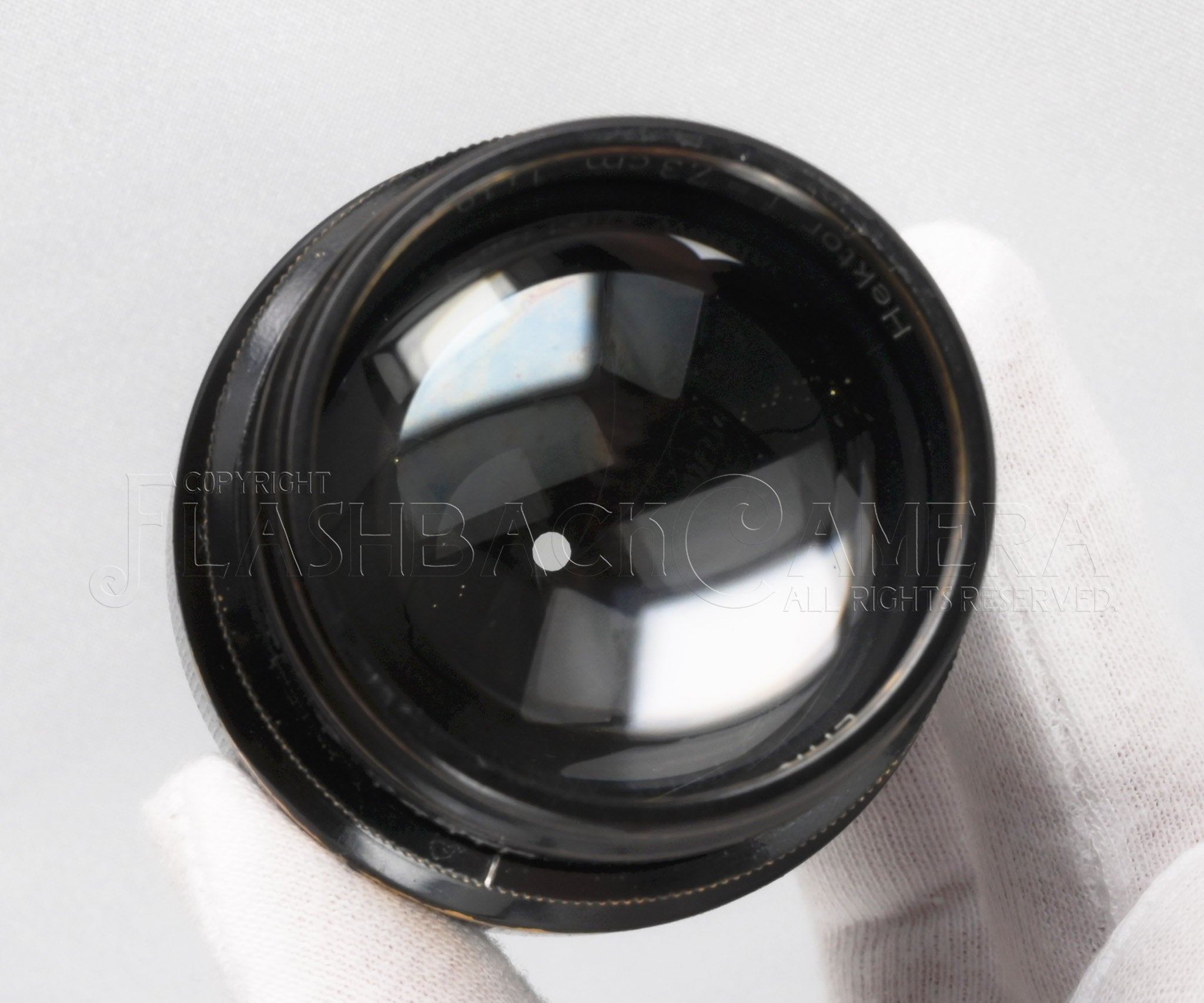 The glass shows some aging-related discoloration and minor stains but no haze. There are no noticeable cleaning marks, making this an excellent example of the Hektor in terms of optical condition.