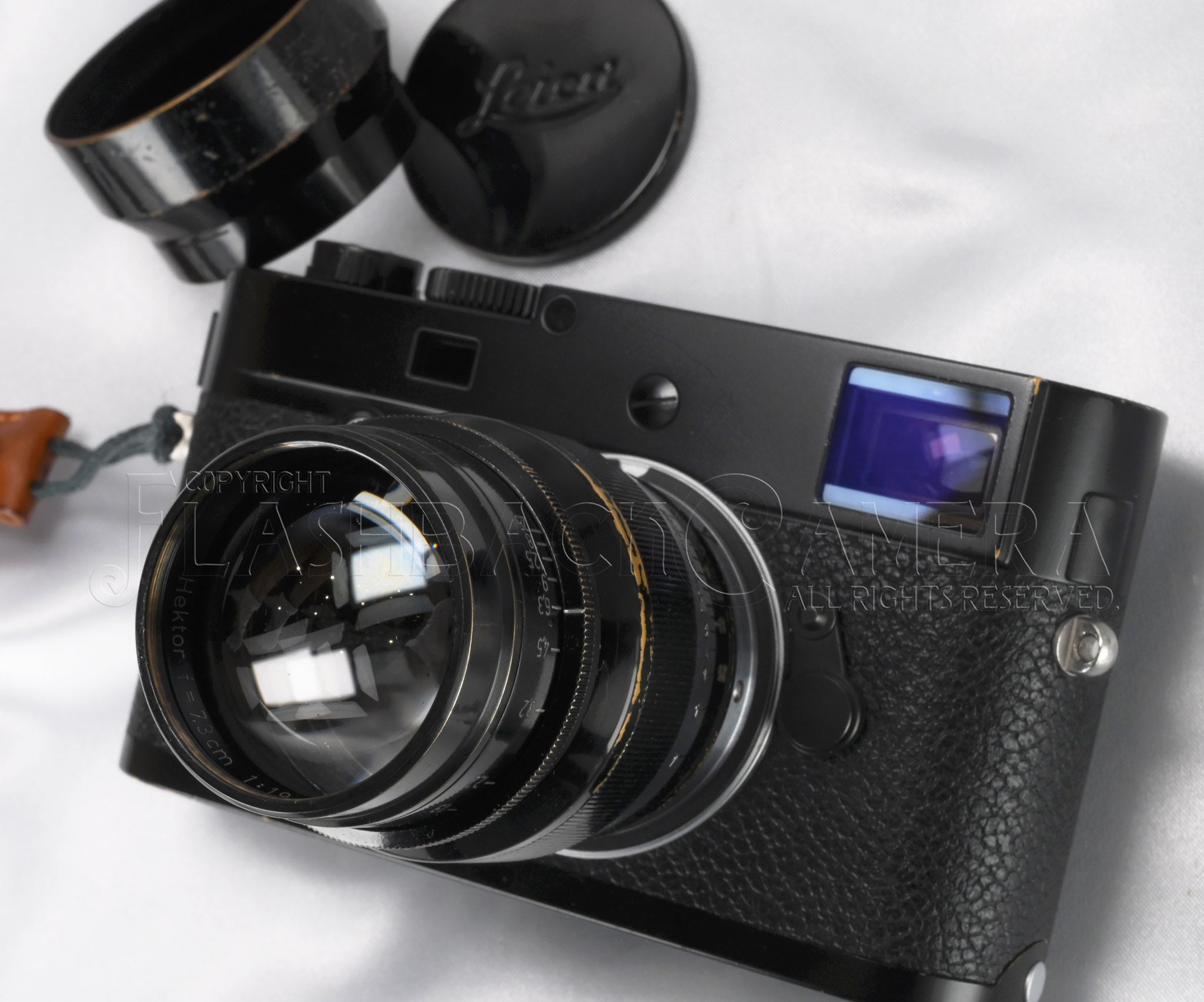 Hektor 73mm f1.9, Leica code name HEKON. A renowned prewar medium telephoto lens by Leitz. Serial number in the 430,000 range, made in 1938. Marked in meters, featuring a rotating helicoid design. The elegant combination of black paint and chrome finish pairs beautifully with both Barnack and M-mount Leica bodies. Filter size E39.