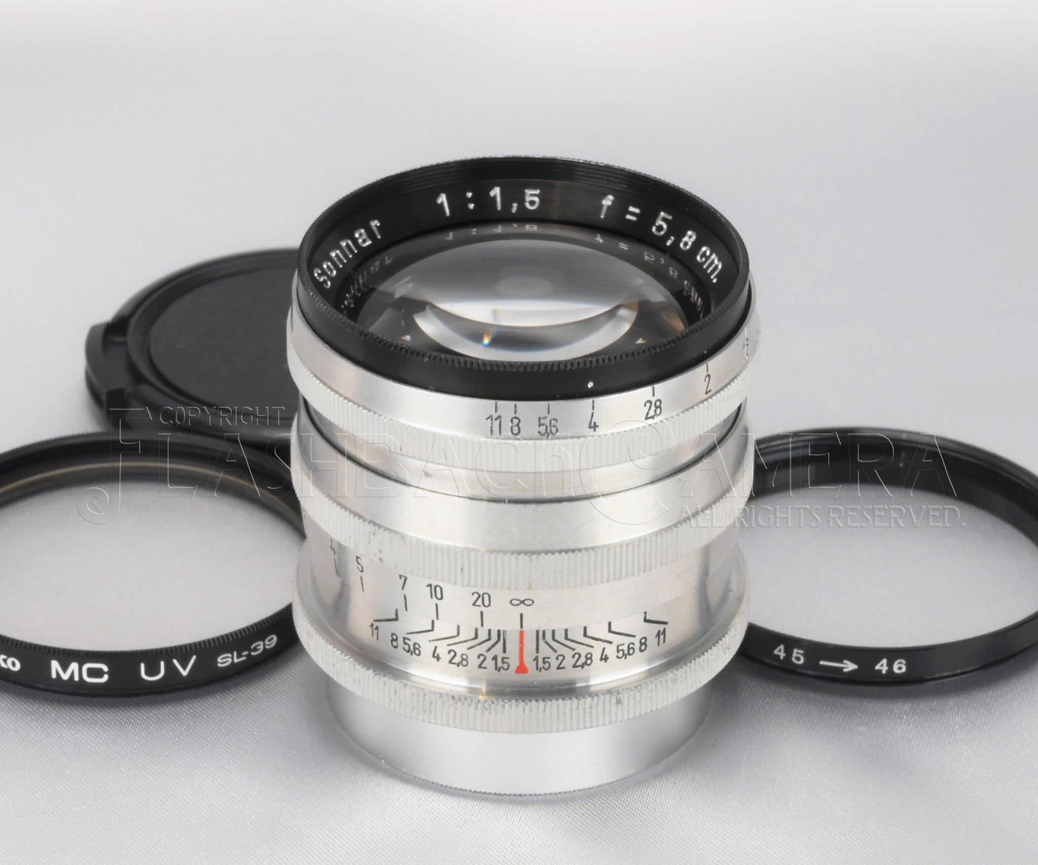 Incidentally, we have handled several examples of this Leica Sonnar 58mm over the years, and almost all of them carry serial numbers in the 1407xxx range. This lens is no exception.