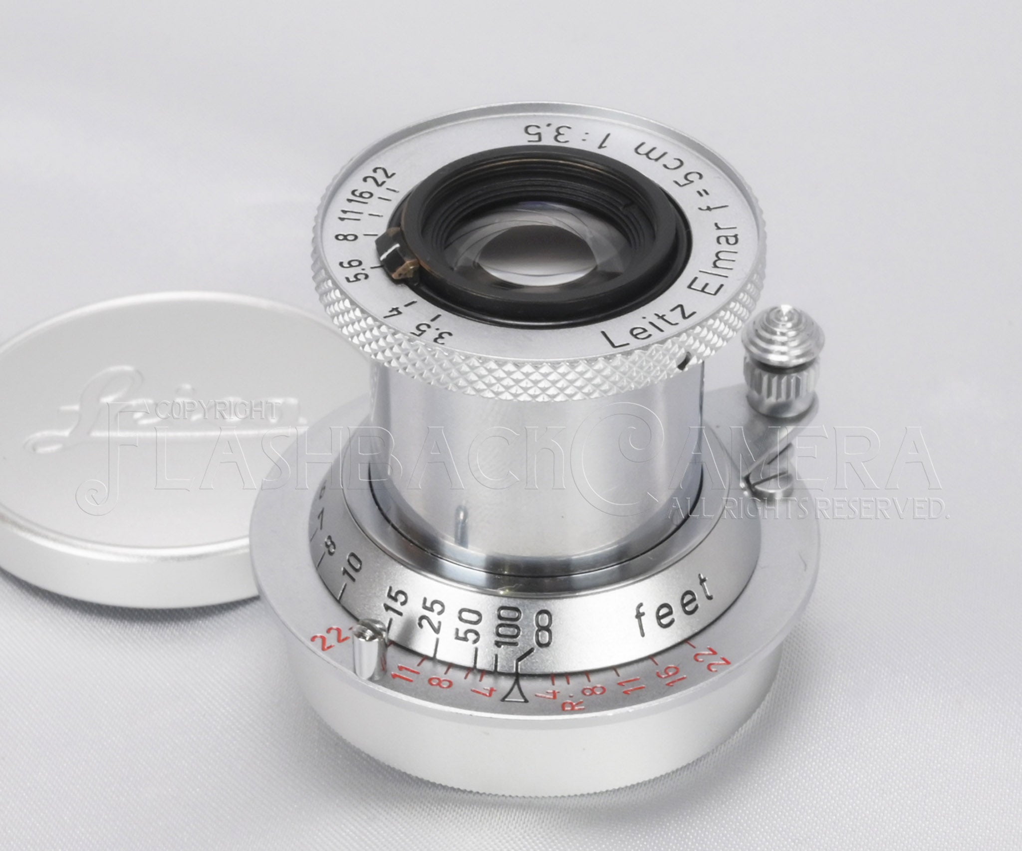 The final version of the A36 Elmar 50mm f3.5, a lens that had been produced for over 30 years since the Leica Model A era. It stands out for its exceptional build quality, with a solid barrel and fine matte chrome finish.