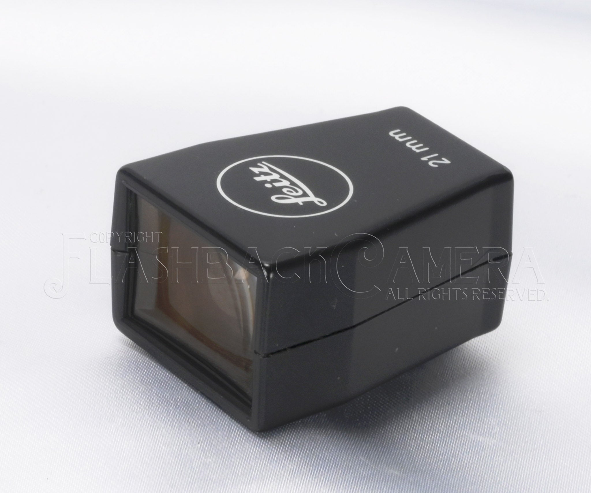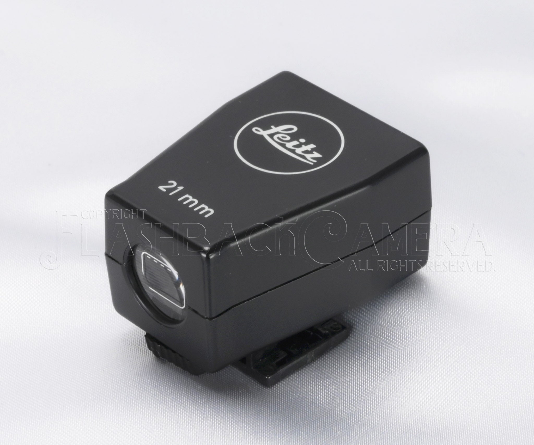 Viewfinder for 21 mm Leica lenses. Leitz product code 12012. Successor to the SBKOO model. The exterior is made of plastic, resulting in a lighter design. The glass elements feature multi-coating, providing excellent visibility even under direct sunlight.