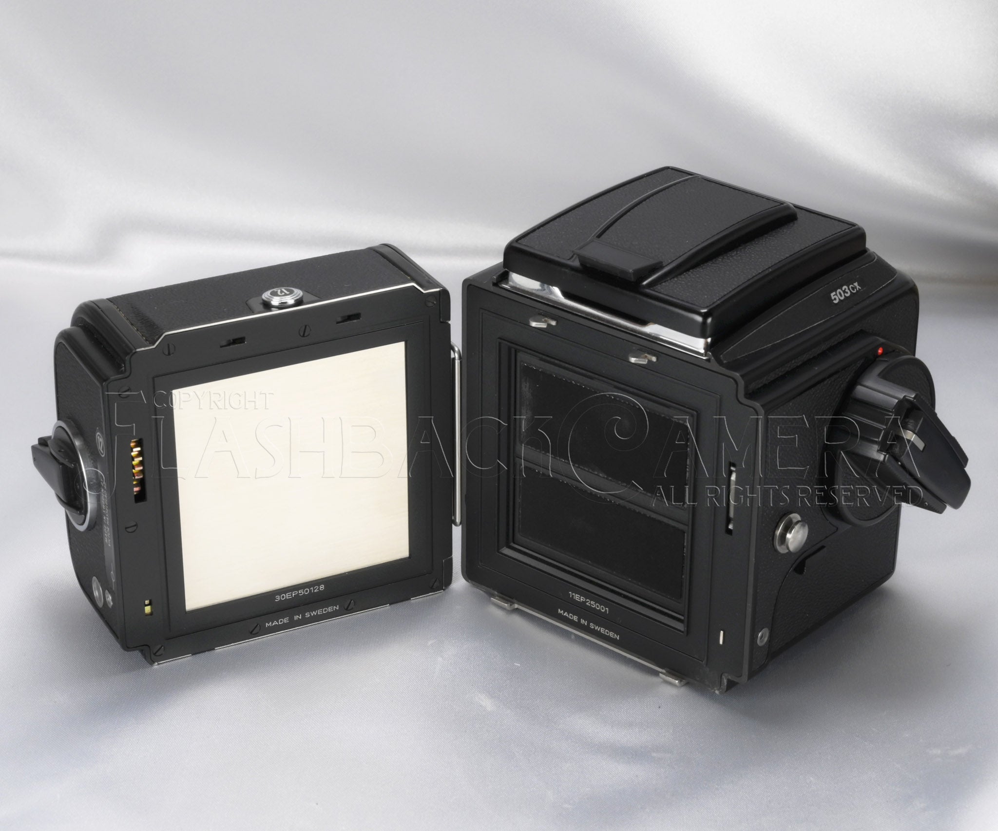Hasselblad 503CX in black finish. Introduced in 1989, this model was produced in 1993 for both the body and the magazine.