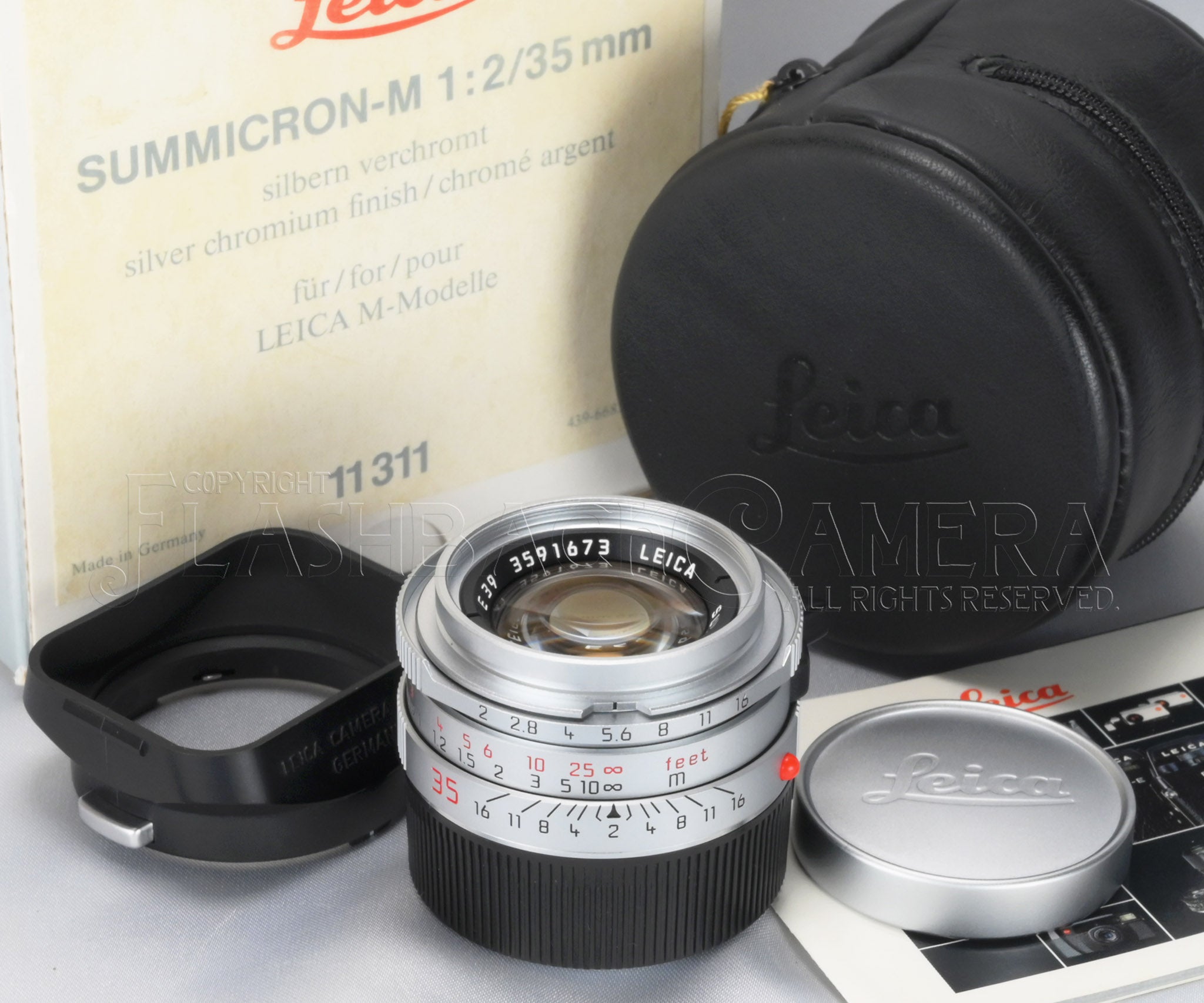 Summicron-M 35mm f2, 7-element version. Rare chrome barrel. Leica product code 11311. Serial number in the 3.59 million range, made in 1992.