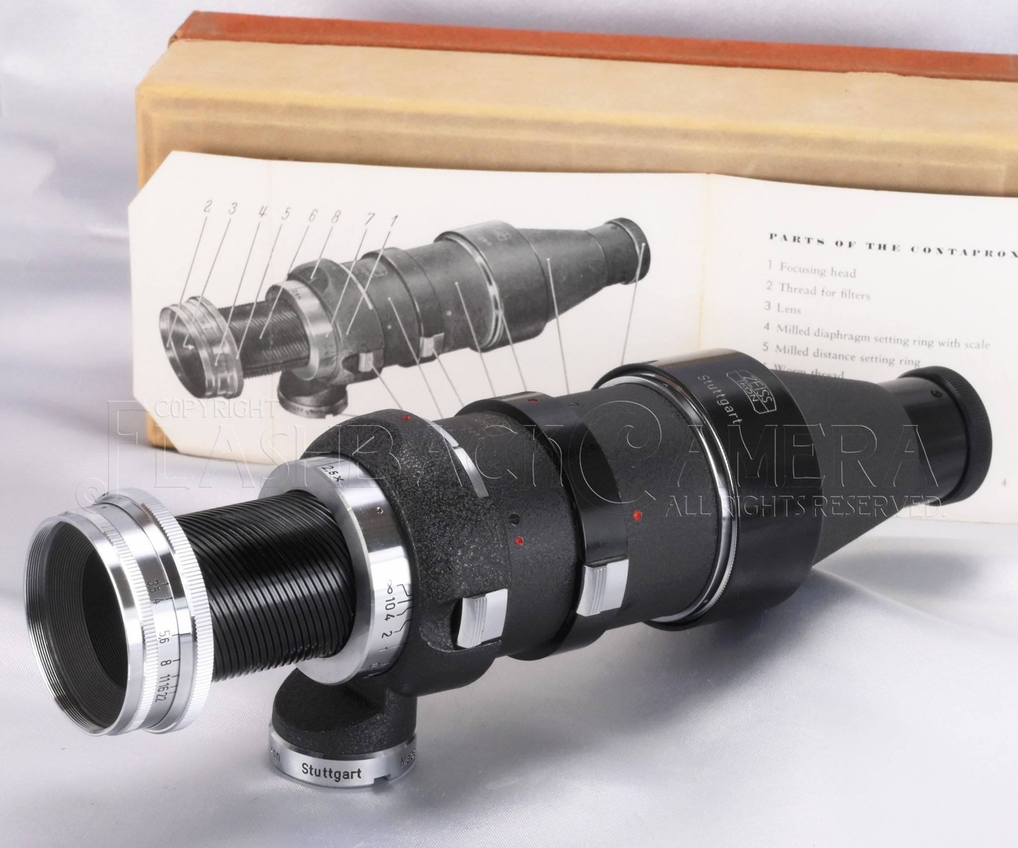 It consists of a focusing head, extension ring, and focusing screen. It allows for even closer focusing than the Contameter.