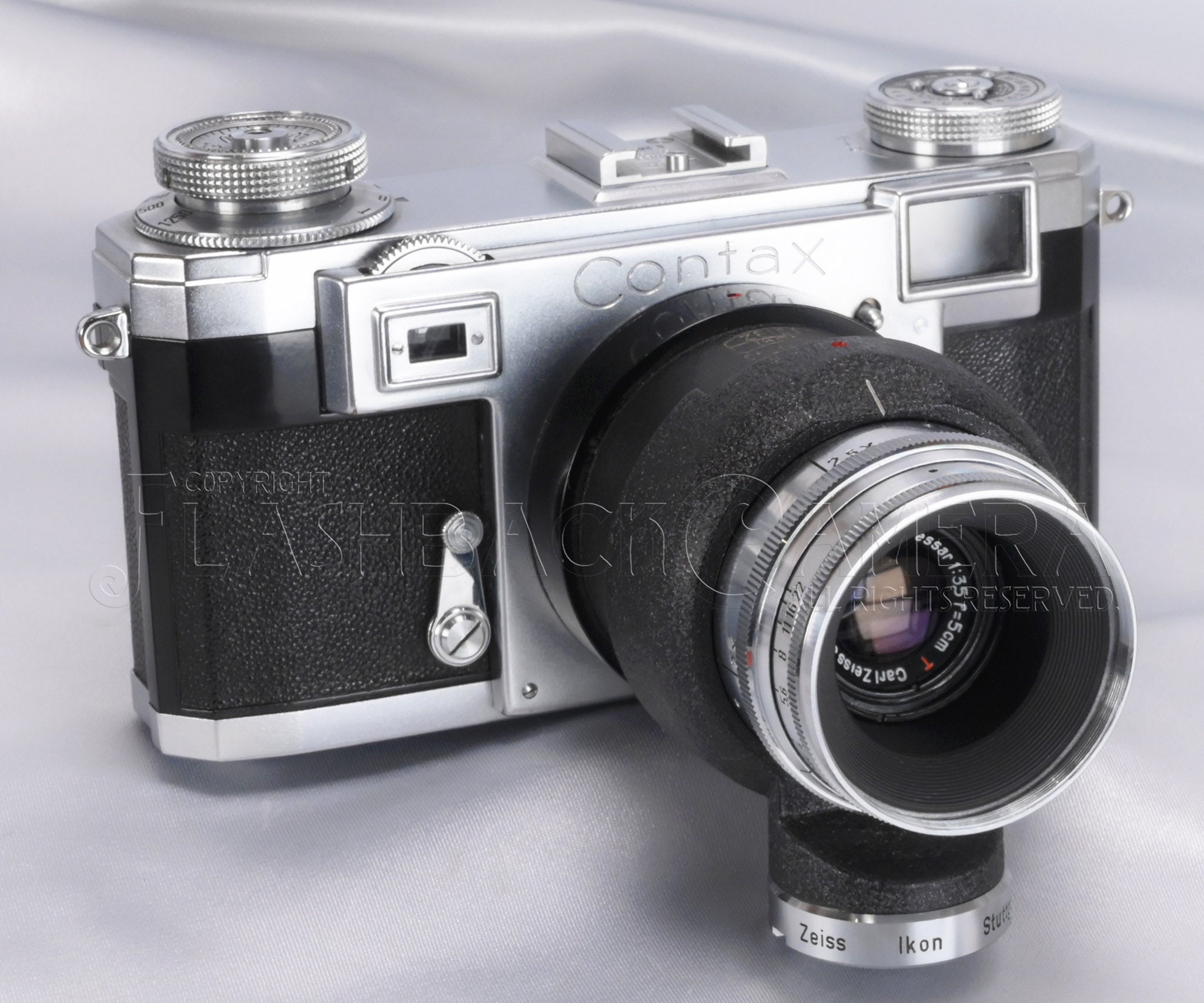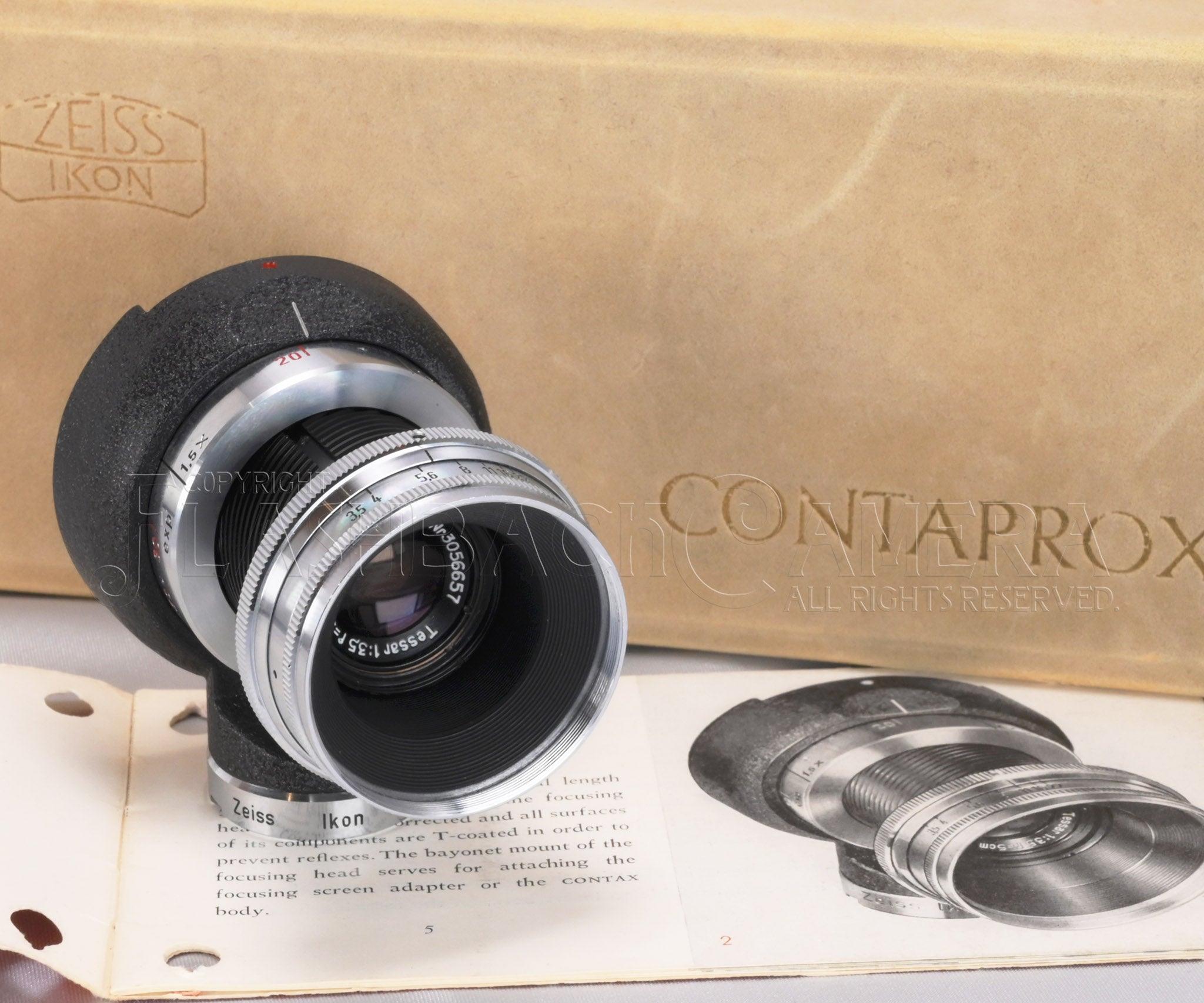 Contaprox Type I, model 5522/13. Manufactured by Carl Zeiss Jena. A close-up accessory for the Contax IIa / IIIa, produced after the war. The taking lens is a Carl Zeiss Jena Tessar 50mm f3.5 with T coating.