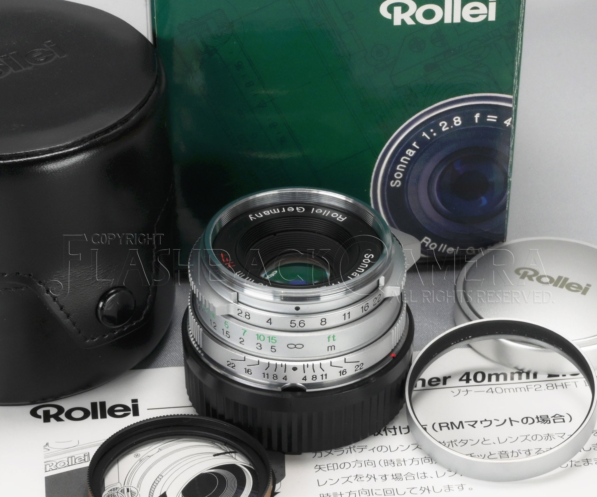 Rolleinar Sonnar 40mm f2.8 HFT. A Leica screw mount lens adapted from the renowned Sonnar used in the Rollei 35S. Released in 2002 and distributed in Japan by Komamura, also known for Horseman cameras. It features a 4-group, 5-element construction, a minimum focusing distance of 0.7 m, and Rollei’s unique HFT (High Fidelity Transfer) coating. Filter size is E39.