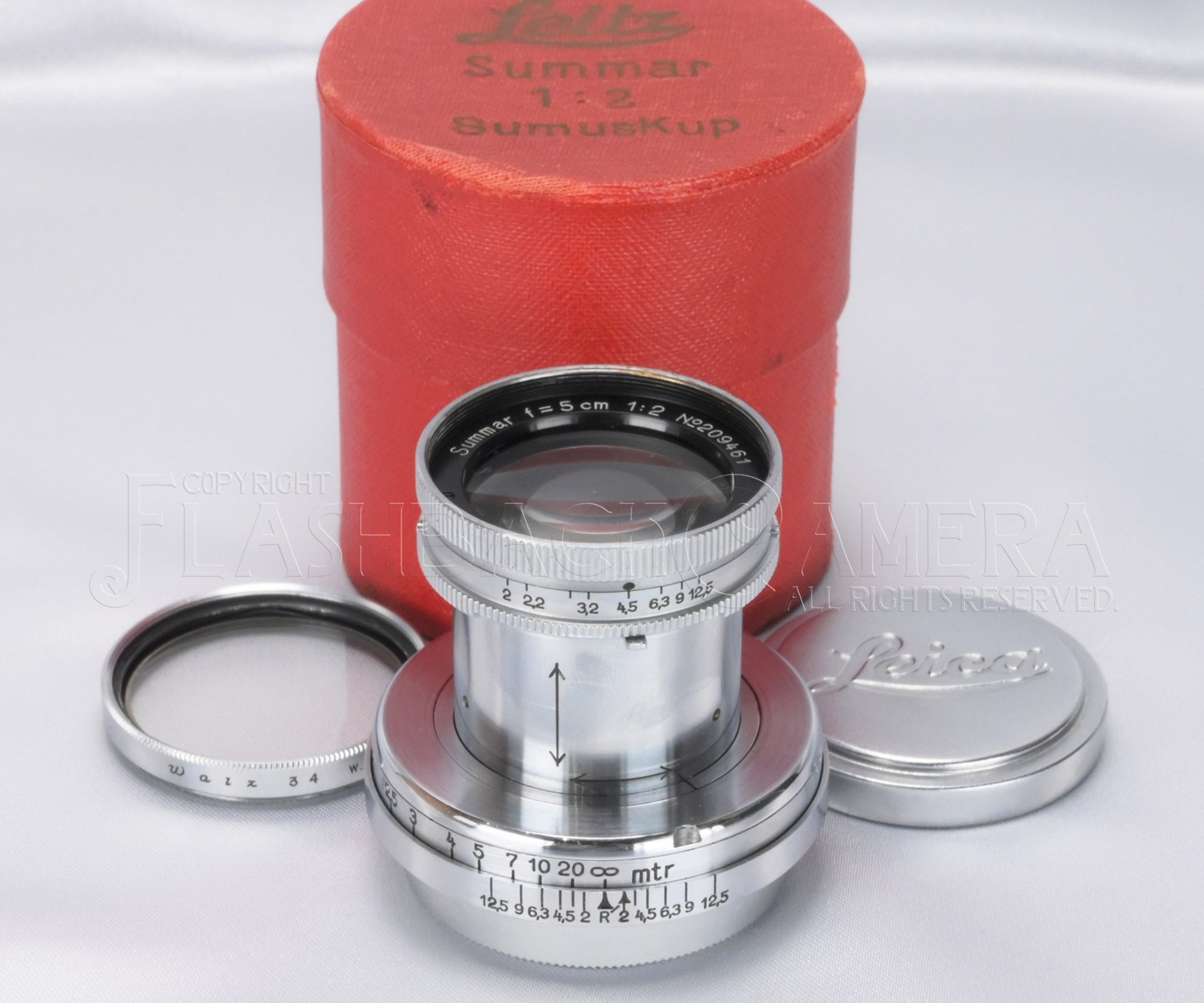 A very beautiful Summar 50mm f2 with collapsible chrome barrel. Carefully used by our customer and has returned to us once again — this marks its sixth sale through our shop.