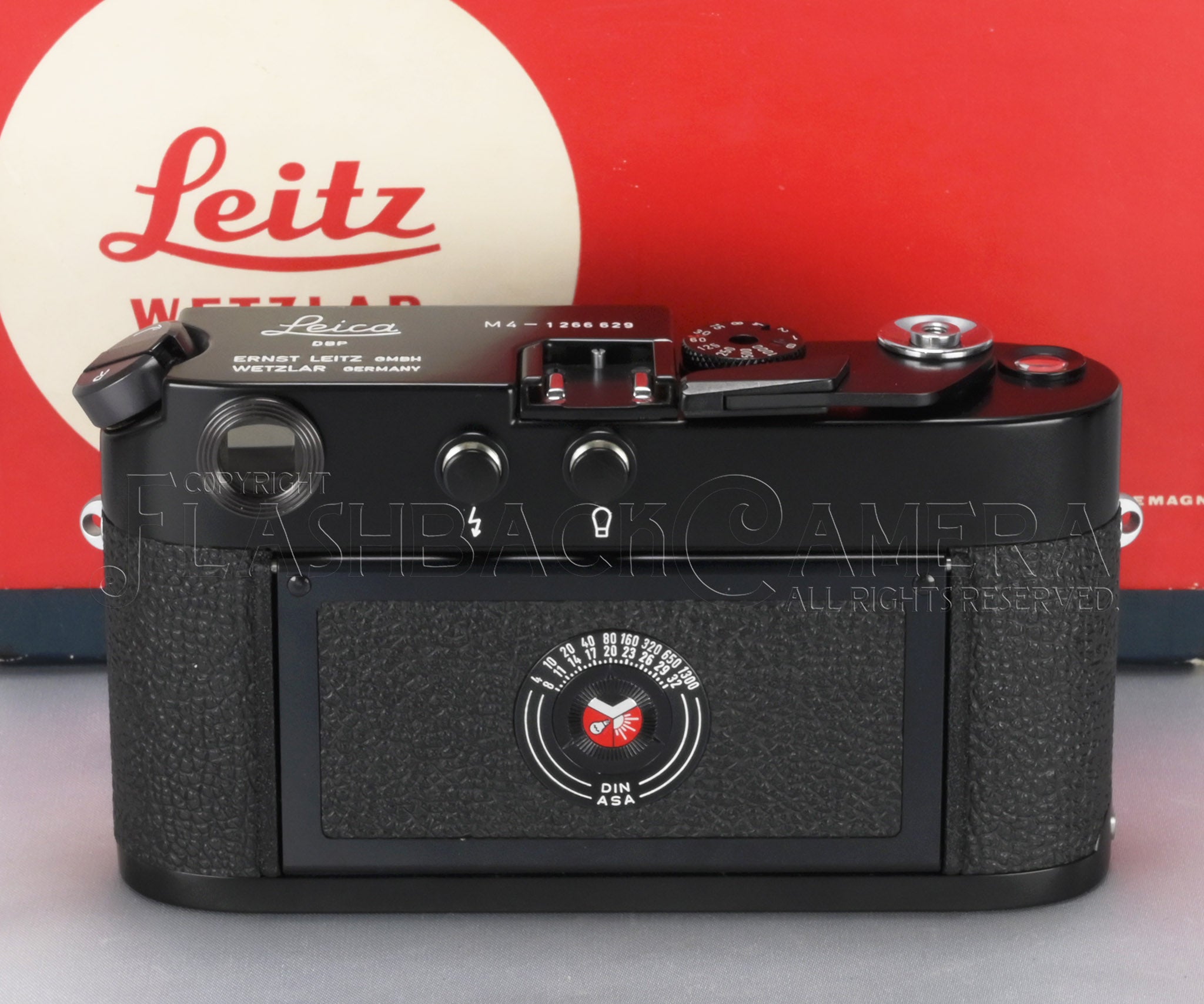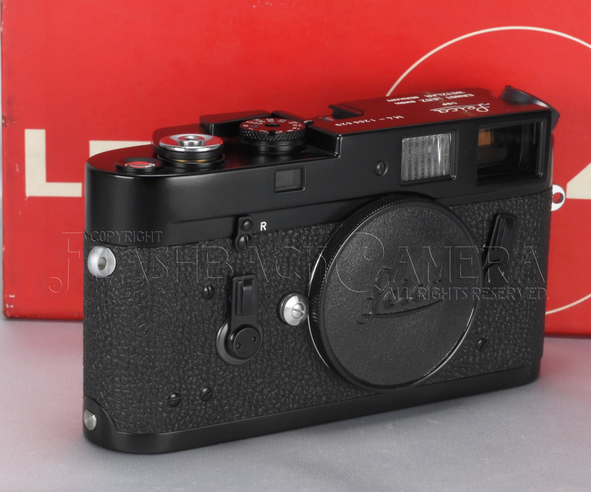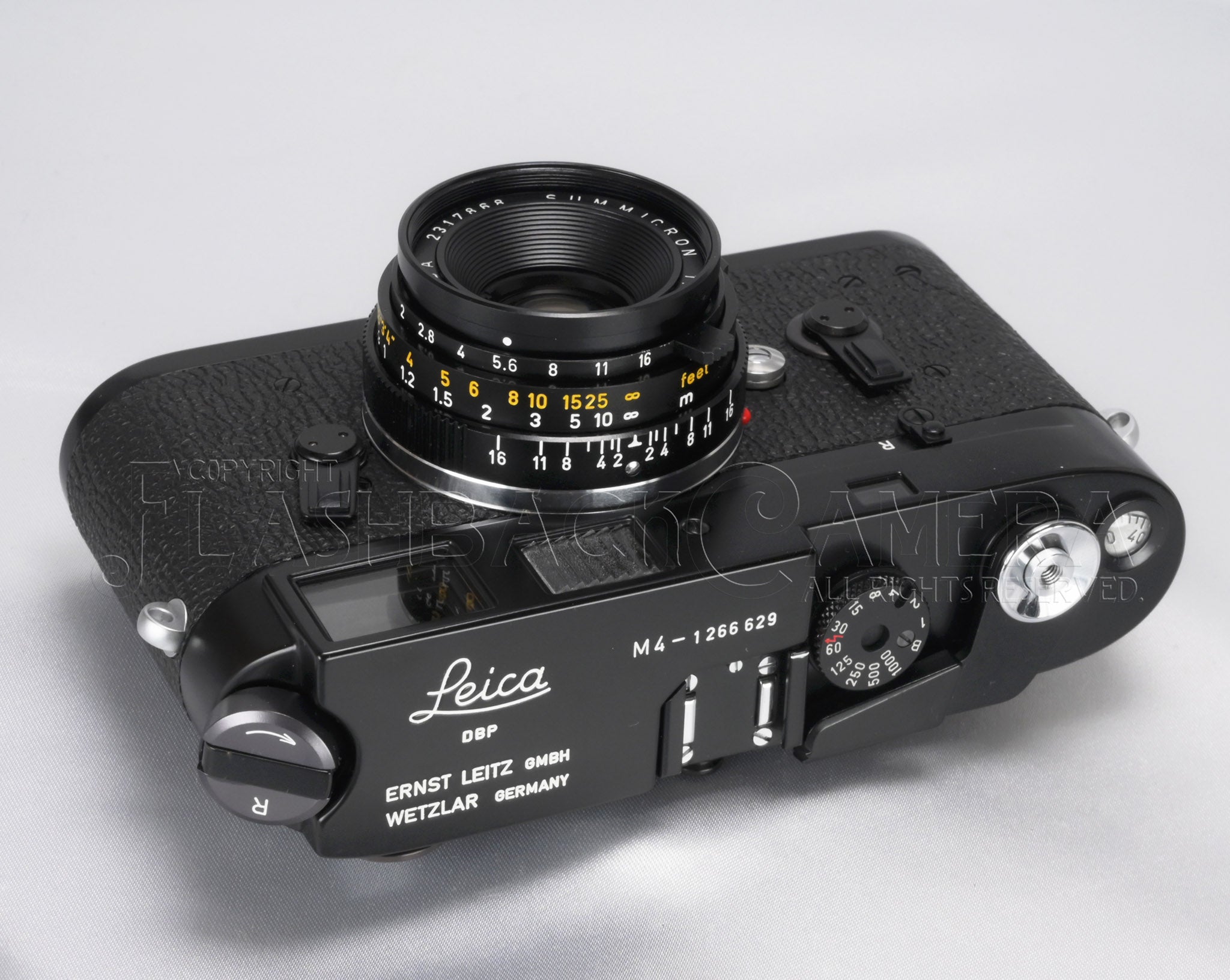 Leica M4 Black Paint. The Leitz product code is 10402. This example bears a serial number in the 1.26 million range and was delivered on June 11, 1970. Near-mint condition. The beautifully preserved semi-gloss black paint is simply mesmerizing.