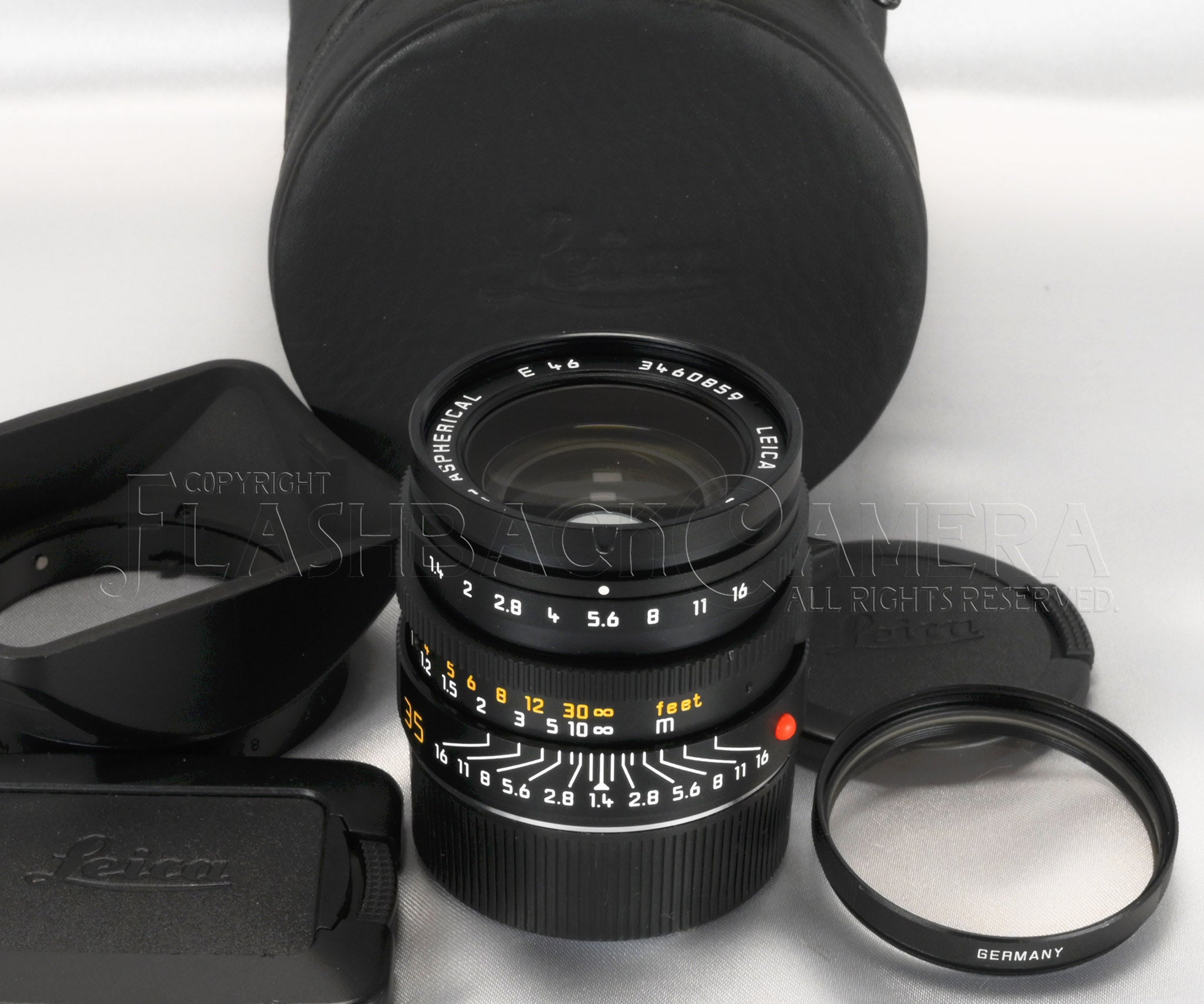 Supplied with a 12587 hood, 14013 hood cap, E46 UVa filter, rear cap, and leather case. A complete set, ready to head straight out for shooting.