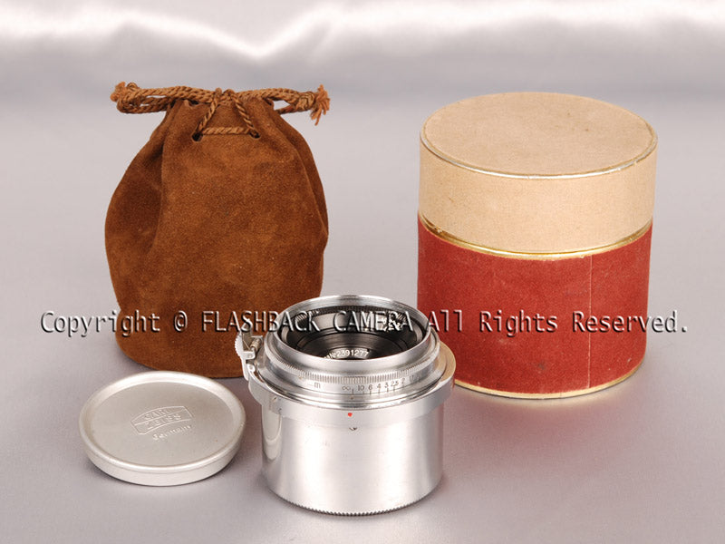 1939年製。クローム。3群4枚構成。RFコンタックス用。コンタックス II/III型の時代のもの。距離計には非連動だが、パンフォーカスで使えます。珍しいアルミ製の後キャップ、ポーチ、元箱まで揃っており、コレクションとしても。前キャップは戦後のもの。2015年1月にOH済。ガラス綺麗です。非常に小さな玉ですが、驚くほど鮮鋭な描写をします。カメラに装着すると何ともカッコいいですねぇ!(カメラは商品に含まれません。)