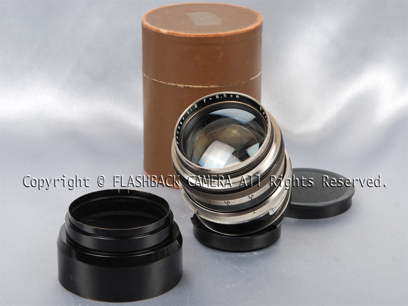 稀少ブラックコンタックス用黒ゾナー。黒/ニッケル。1934年製。メートル表記。稀少なオリジナルフード付。2016年2月にOH済。絞りやヘリコイドの動き、滑らかです。前玉に僅かに拭き傷見られるが、他はクモリなども見られずとてもクリーン。前キャップは戦後のもの。なかなか綺麗なブラック・ゾナーです!試写結果もさすがのゾナー。試写館をご覧頂ければ幸いです。