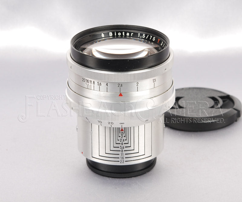 ビオター 75mm f1.5の戦後型。1953年頃の製造。4群6枚構成。メートル表記。アルミ鏡胴。Tコーティング。前玉裏にコーティングの荒れと浅い拭き傷がやや多く見られます。実写結果良好です。やや稀少。