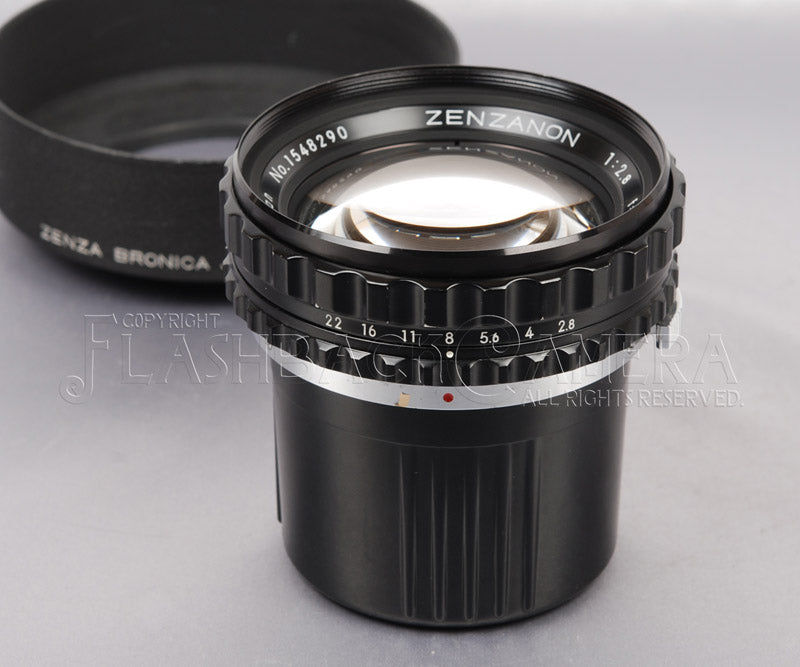 ブロニカ小バヨネット用。シングルコート。ゼンザノンという名称ですが、製造は東京光学。長らく噂レベルでの情報でしたが、日本カメラ博物館で行われたブロニカ関係者の公演で、公式に東京光学製ということが明かされました。レンズ着脱マークの横のメッキが少し欠けています。前玉に拭き傷がありますが、全体的にはまずまずのコンディションです。ボディとセットではたまに見かけますが、レンズ単体は最近は少なくなってきました。委託品。