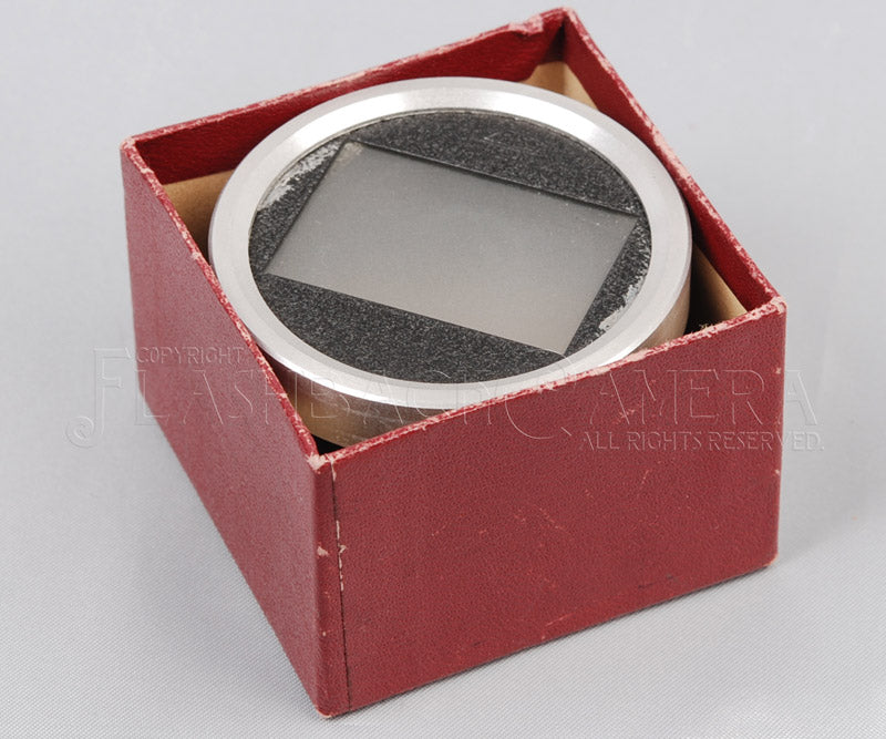 ツァイスイコン製のピントチェッカー。コンタックス用外爪レンズを取り付けると、スクリーンに像が浮かび上がります。レンズチェックの際、無限遠が出ているか、距離指標と実際のピント位置の比較に使うことができます。スクリーン、外観は少々擦れが見られます。ハチゴゾナーを装着して結像確認済です。元箱(下側だけ)が付属します。