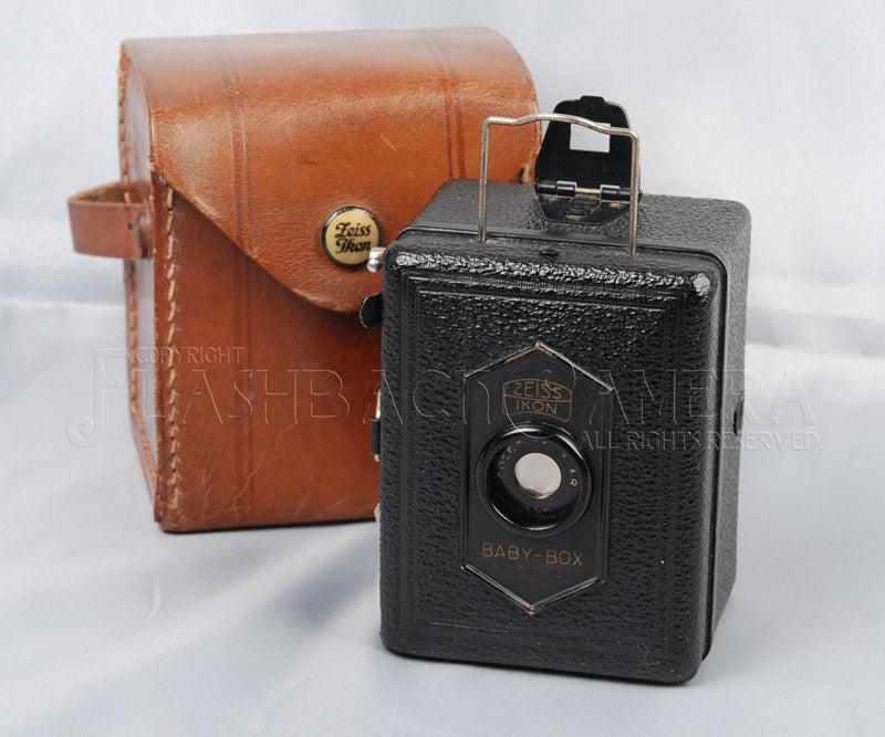 54/18。Zeiss Ikon社製。レンズの周囲に金属プレートが付いたベビー・ボックステンゴールの2ndバージョン。1934〜38年の製造です。127フィルム使用。3X4cm判(ベスト半裁)。Lumiere社の127スプールが付属します。ファインダー・フレームを引き出さないとシャッターは切れませんのでご注意を。美しい仕上げの革ケースを含め、とても可愛らしいボックスカメラです。このカメラとしてはかなり良いコンディション。