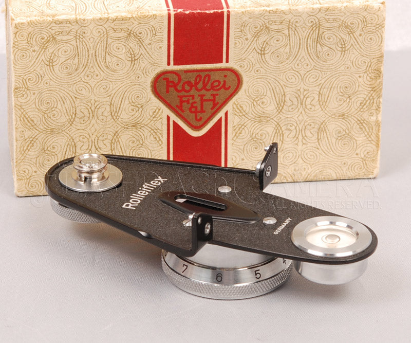 ローライフレックス、ローライコード用のパノラマヘッド。カチっと回るヘッド部分や各部の剛性感など、往年のローライらしい作り見事を感じて頂けるアクセサリーです。装着確認済。大ネジ用の三脚穴アダプターが付属します。元箱も綺麗です。実用するかは別として、素晴らしい仕上げと精度に惚れ込めるローライ小物です。