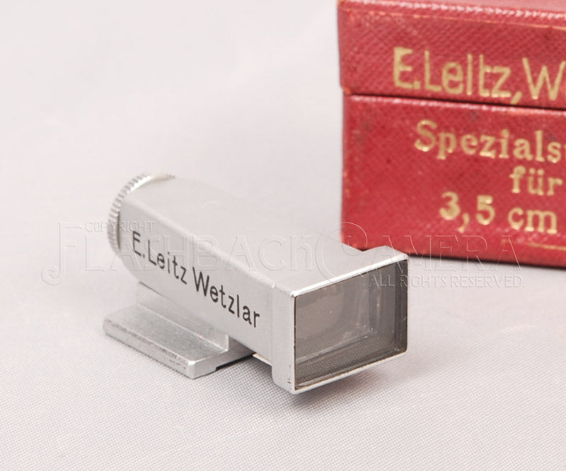 ライツの35mm用ミニファインダー。戦前品。Germany刻印入り。デザイン秀逸、小粋なファインダーで見え味良好。バルナックに装着した姿も素晴らしい。M型ライカにも良く似合います。ぺったんこのエルマー 35mm f3.5もあれば最高ですね。アクセサリー・シュー裏側に3.5cmと手書きの文字が入っていますが、他は申し分の無いコンディションです。ライツは素晴らしいファインダーを数々作ってきましたが、WEISUはその中でも白眉の出来でしょう。レアなアクセサリ。珍しい元箱付です。