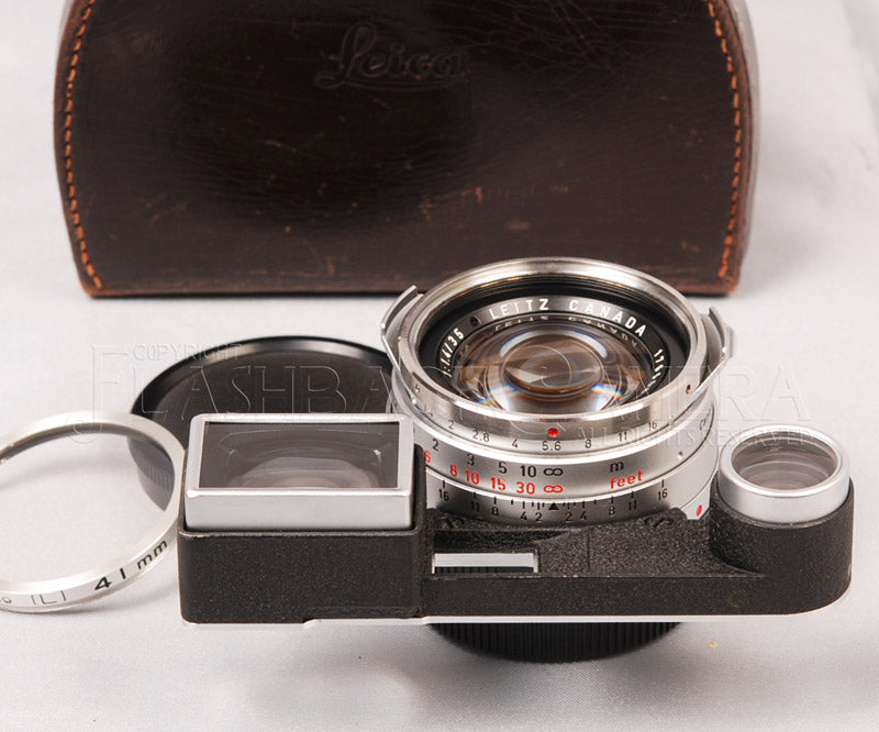 OCSUC。176万台。1960年製。ズミルックス 35mm初期玉のライカ M3用メガネ付。最短撮影距離は65cm。独特な描写と共に、ライツ全盛期のつくりや素材感もたっぷりとお楽しみ頂ける一本です。メガネ部の右上の角に小さなアタリがみられますが、他は使用感少なく綺麗なコンディションです。レンズはとても綺麗な状態を保っており、クモリも無くスッキリしたガラスです。コーティングも全面綺麗に残っています。