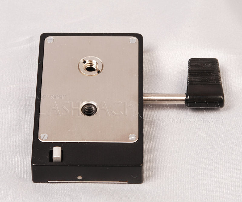 45128。ハッセルブラッド用の三脚クイックシュー。本品は1978〜1986年に製造された箱形の最初のバーションです。三脚へのカメラの取り外しが素早く行え、ビシッと固定されます。三脚を持って移動しながらの撮影には欠かせないアイテムです。ごく僅かな擦れが1〜2箇所見られますが、全体的にはとても綺麗なもの。