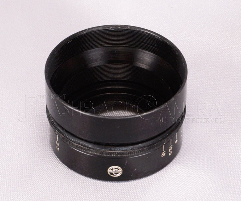 久し振りの入荷です!ダルメイヤー等の鏡胴を製作していた事でも知られる、英国Cook&Perkins社製の非常に珍しいフード。ネジを留めて装着します。フードを回すことでエルマー 50mm f3.5の絞り操作が可能となる優れモノ。当店オリジナルのエルマー用レンズフード、FB-07の製作段階でも参考にさせてもらいました。アルミ製で軽量ながら、非常に丁寧な作り。素晴らしいアクセサリを作り続けたライツから、何故この様なフードが出なかったのか不思議です。小物好きには堪らない逸品ですね。