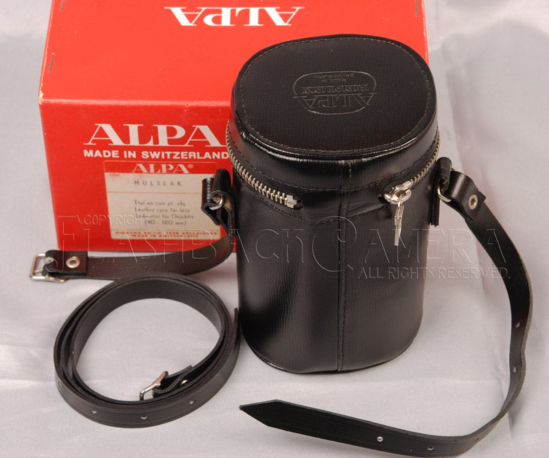 アルパの製品コードはMULBLAK。高級機アルパの名に恥じぬ、それはそれは立派なつくりの革ケース。アンジェニューやシュナイダーの90mm、135mm、180mm等に。外部連動自動絞りの付いたタイプにも対応します。Kinoptik 100mmは大きすぎて入りませんのであしからず。